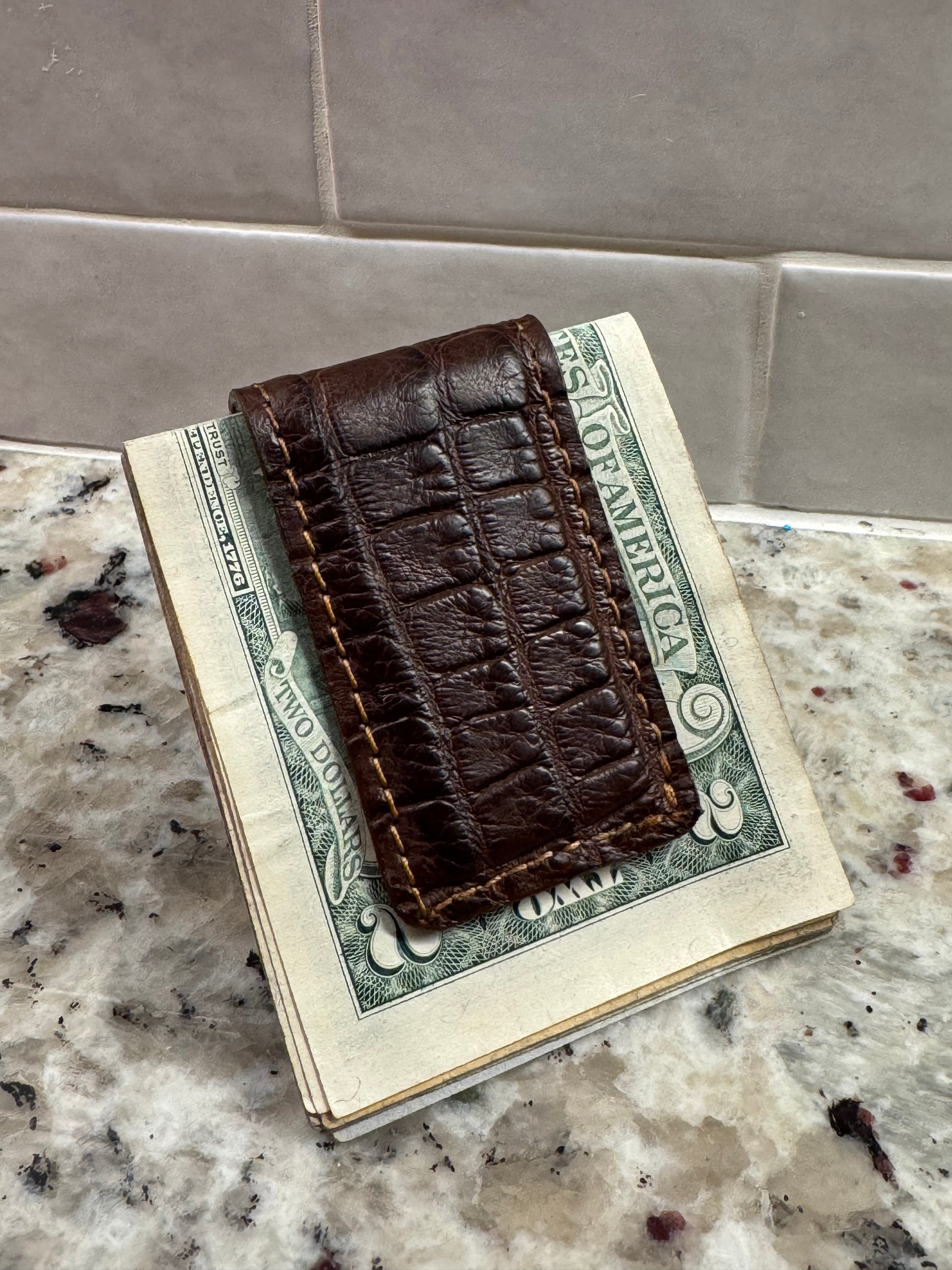 For the true minimalist who wants to make a statement - a beautiful American alligator skin money clip to carry your cash. Washingtons, Ben Franklins, or even a spare Jefferson... this money clip can hold it all.