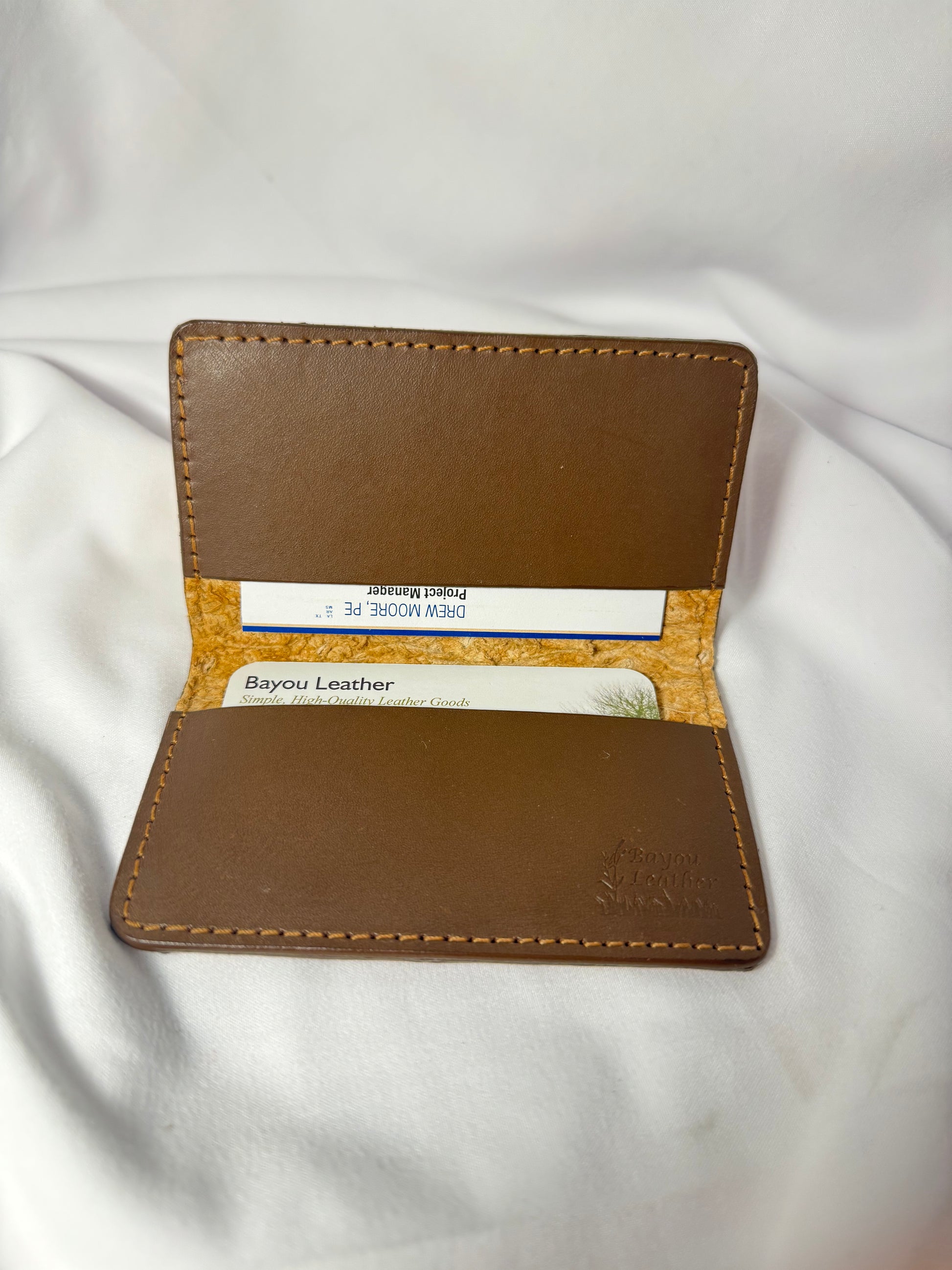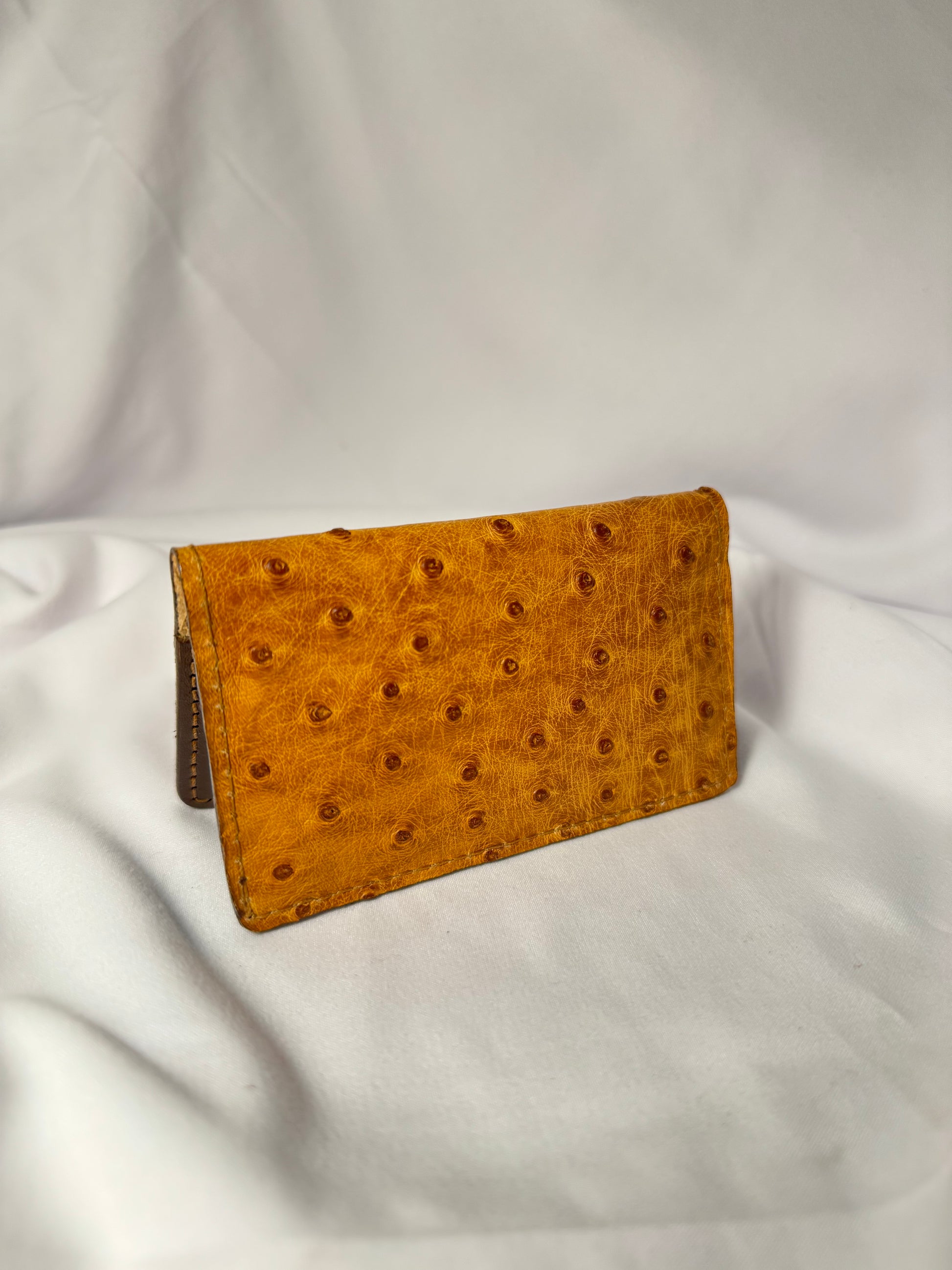 A cardholder that allows you to carry your business cards in style. The South African ostrich hide provides a stunning look that is sure to draw attention. This cardholder is made with two interior pockets that can easily hold 20+ business cards. This could also be used to hold credit cards, gift cards and ID. Also available in alligator.